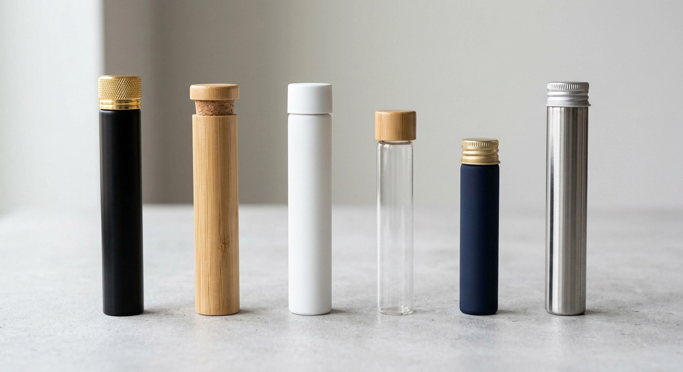 Glass tubes provide an airtight seal and upscale appearance. Styles range from cork-sealed to child-resistant capped tubes. Glass is freshness sealed, giving a clear view of your pre-roll.