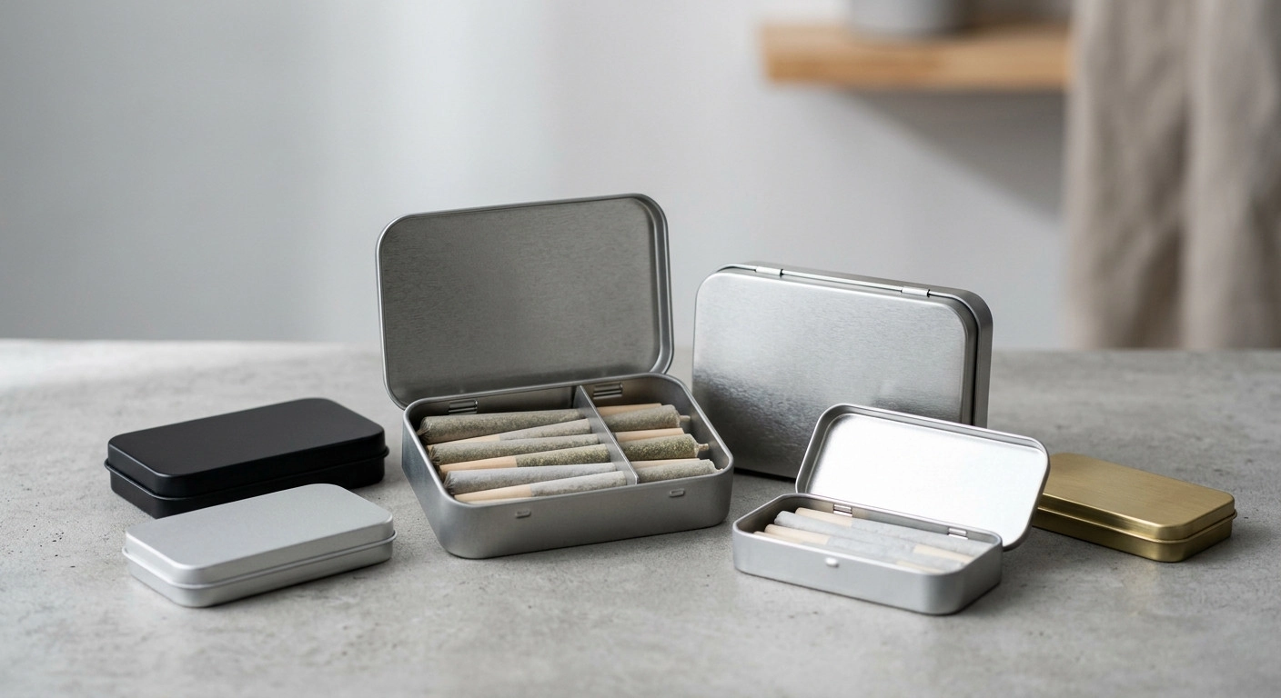 Metal options are available for pre-roll tins and multi-pack cases. These are durable, can be used over and over again, and will add a premium pre-roll packaging touch to your brand. Hinged-lid and sliding tins, for example, are staples of high-end cannabis packaging.