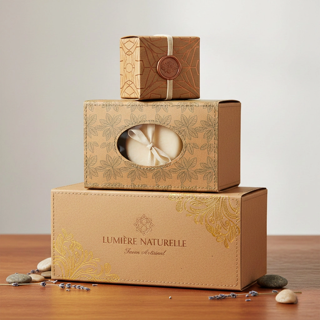 Rustic handmade soap boxes are eco-friendly, natural-looking packaging, often made from kraft paper or recycled materials, designed to complement artisan soaps by highlighting their natural qualities, protecting the product, and telling the brand’s story with minimal, earthy aesthetics like twine or simple stamps. They are sturdy, allow for branding (logos, ingredients), and come in various styles, including windowed boxes or simple wraps, appealing to consumers looking for artisanal, natural, or sustainable goods.