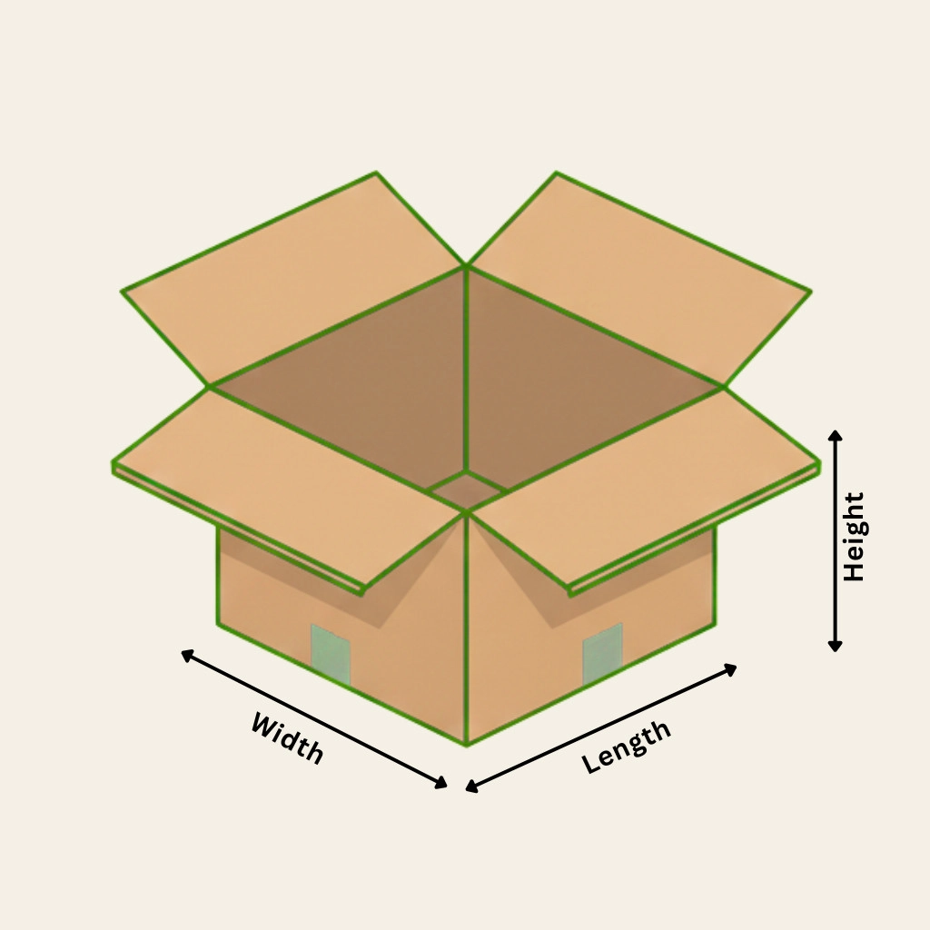 - Length (L): The longest side of the box, usually measured along the base.
